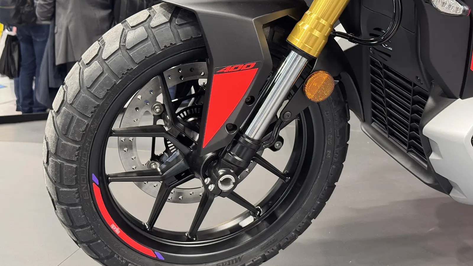 Sous cet habillage, le scooter repose sur un cadre à double berceau en acier renforcé, associé à une fourche inversée de 41 mm et deux amortisseurs à gaz réglables offrant 120 mm de débattement.