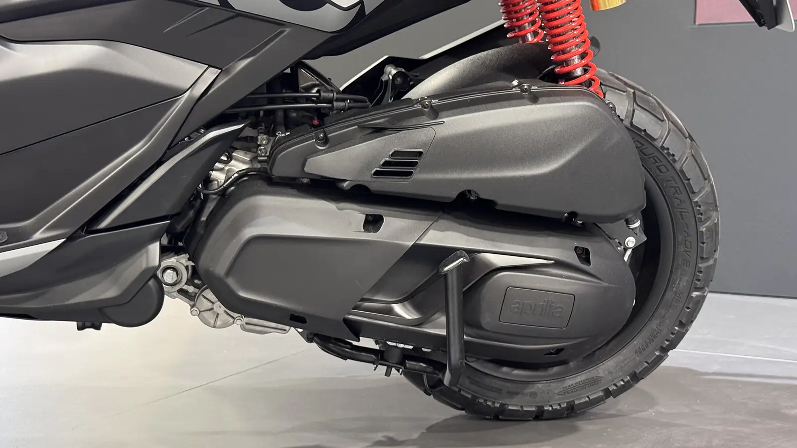 L’Aprilia SR GT 400 est propulsé par un monocylindre HPE Euro 5+ de 399 cm³, emprunté au Piaggio MP3 400 ou Beverly 400 par exemple. Il développe 36 ch à 7 500 tr/min et 37,7 Nm à 5 700 tr/min. Ce moteur s’accompagne d’un contrôle de traction ajustable et désactivable, idéal pour les escapades off-road légères.