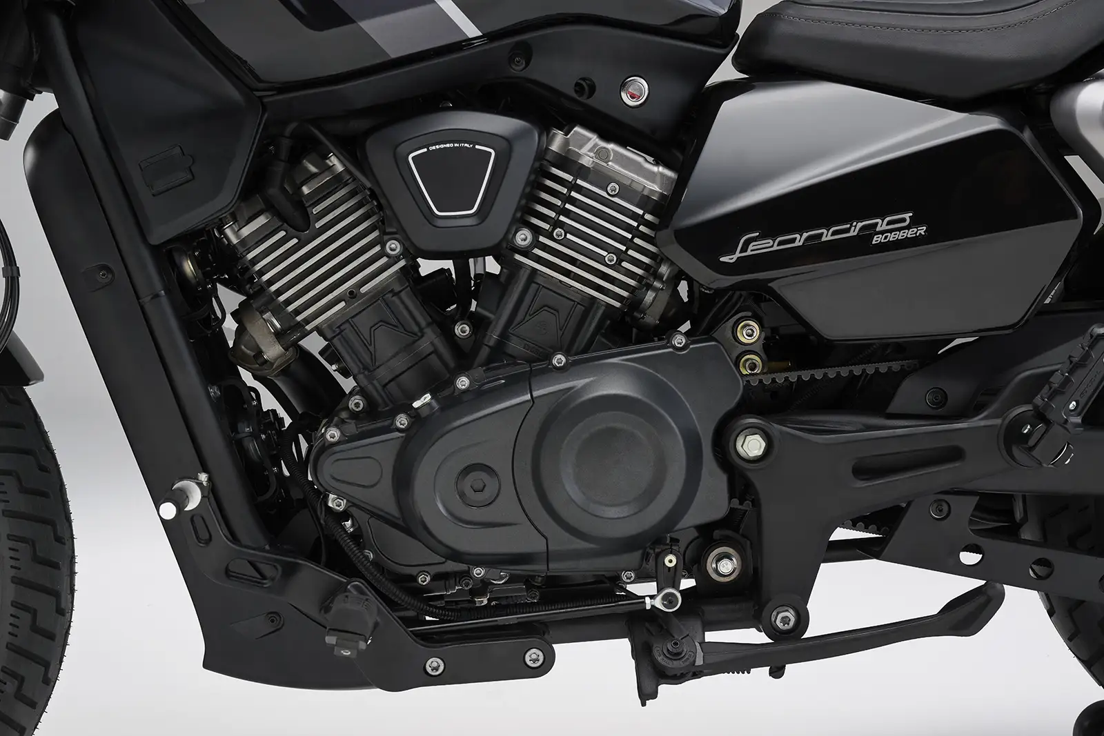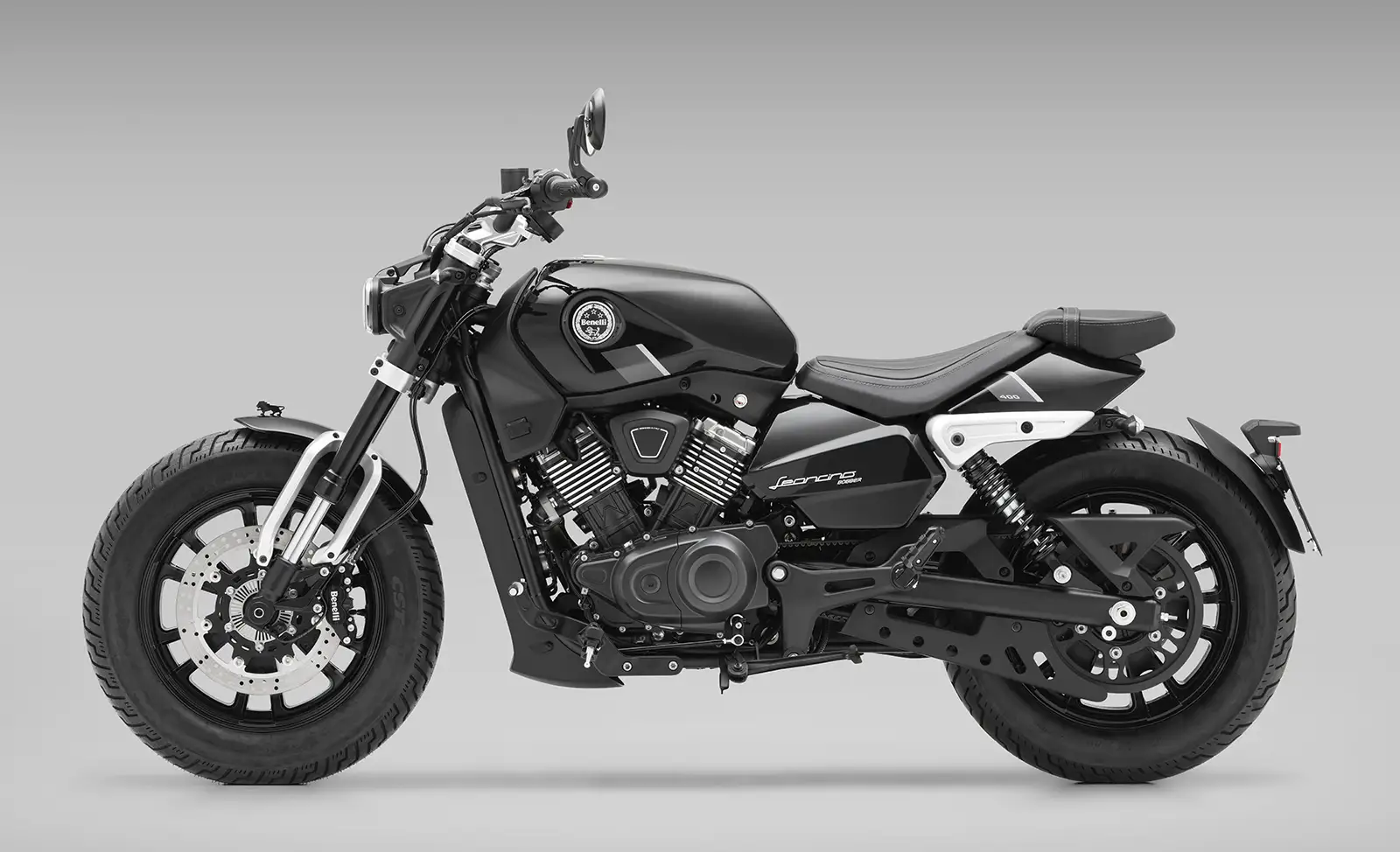 La principale nouveauté technique réside dans son bicylindre en V à 60°, une première pour Benelli. Refroidi par liquide et doté de cylindres à ailettes, ce moteur développe 34,5 ch à 8 000 tr/min et surtout 36 Nm de couple dès 4 500 tr/min, privilégiant la souplesse à bas régime, caractéristique recherchée sur un bobber.