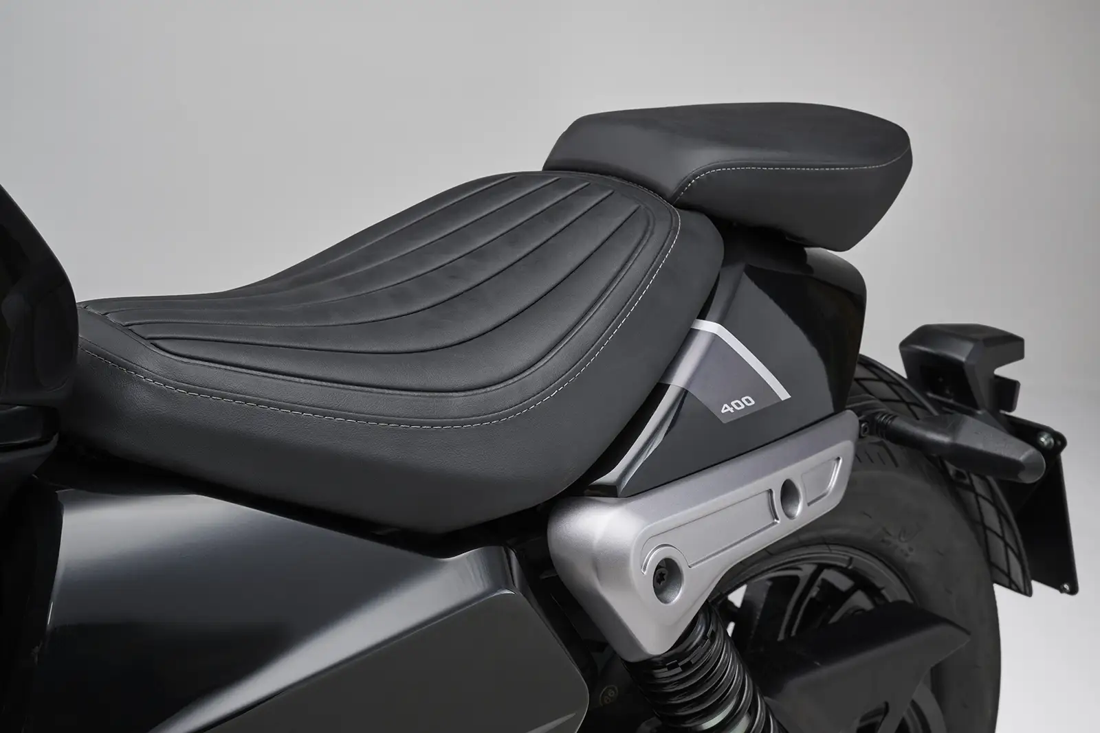 Le travail stylistique se distingue par un double échappement latéral superposé, un filtre à air apparent et une ligne arrière volontairement courte. Le design est complété par un éclairage full LED, avec une particularité originale : l’absence de feu stop central, les fonctions de position et de freinage étant intégrées directement aux clignotants arrière LED.