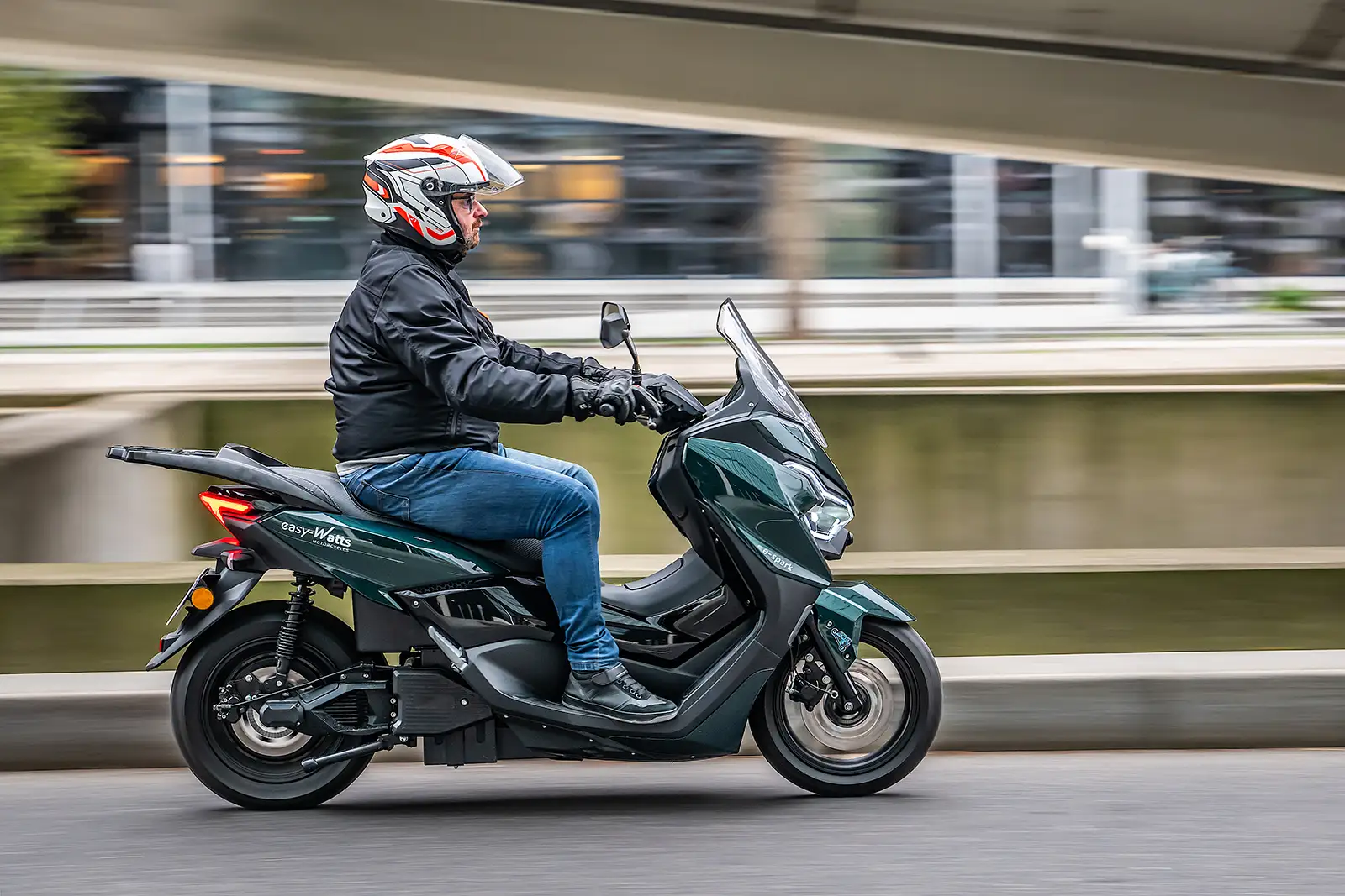 easy-Watts enrichi son catalogue de scooters électriques équivalent 125 avec le easy-Watts e-Spark. Un modèle compact et urbain conçu pour séduire les jeunes conducteurs et les utilisateurs recherchant un véhicule pratique en ville.