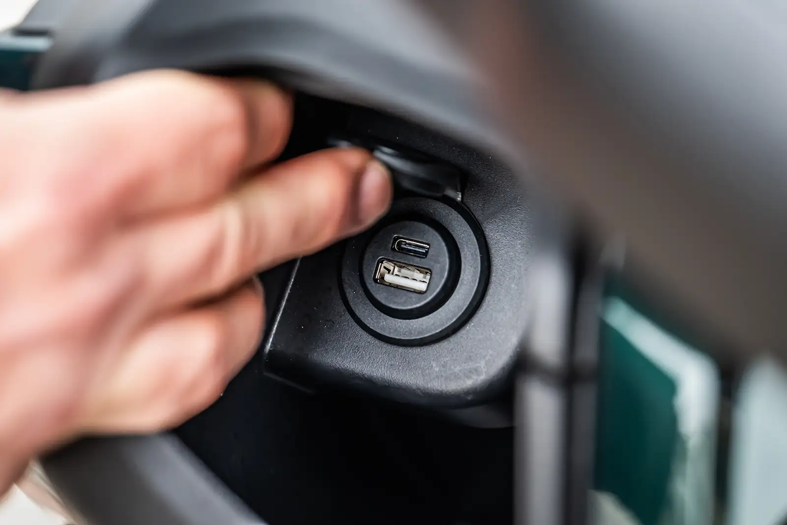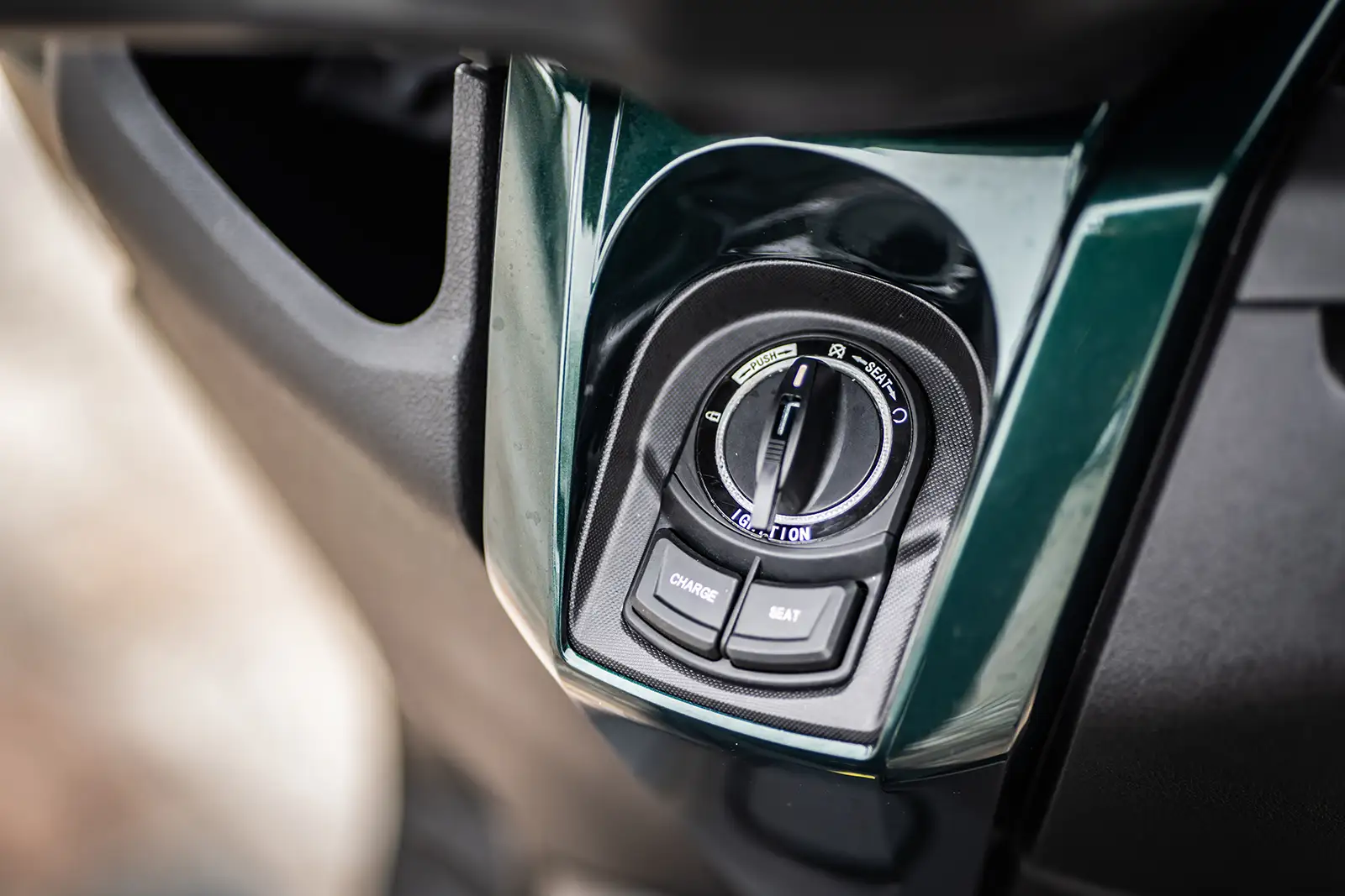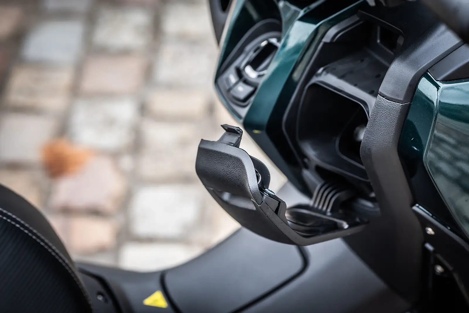 Il propose également des commodos bien agencés avec warning, une bulle non réglable, un large porte-paquets de série avec possibilité d’installer un top case de la marque en option, une boite à gants ouverte avec prise usb et usb-c, une boite à gants fermée (attention à la fragilité de la charnière) abritant une prise usb et une béquille centrale et latérale.