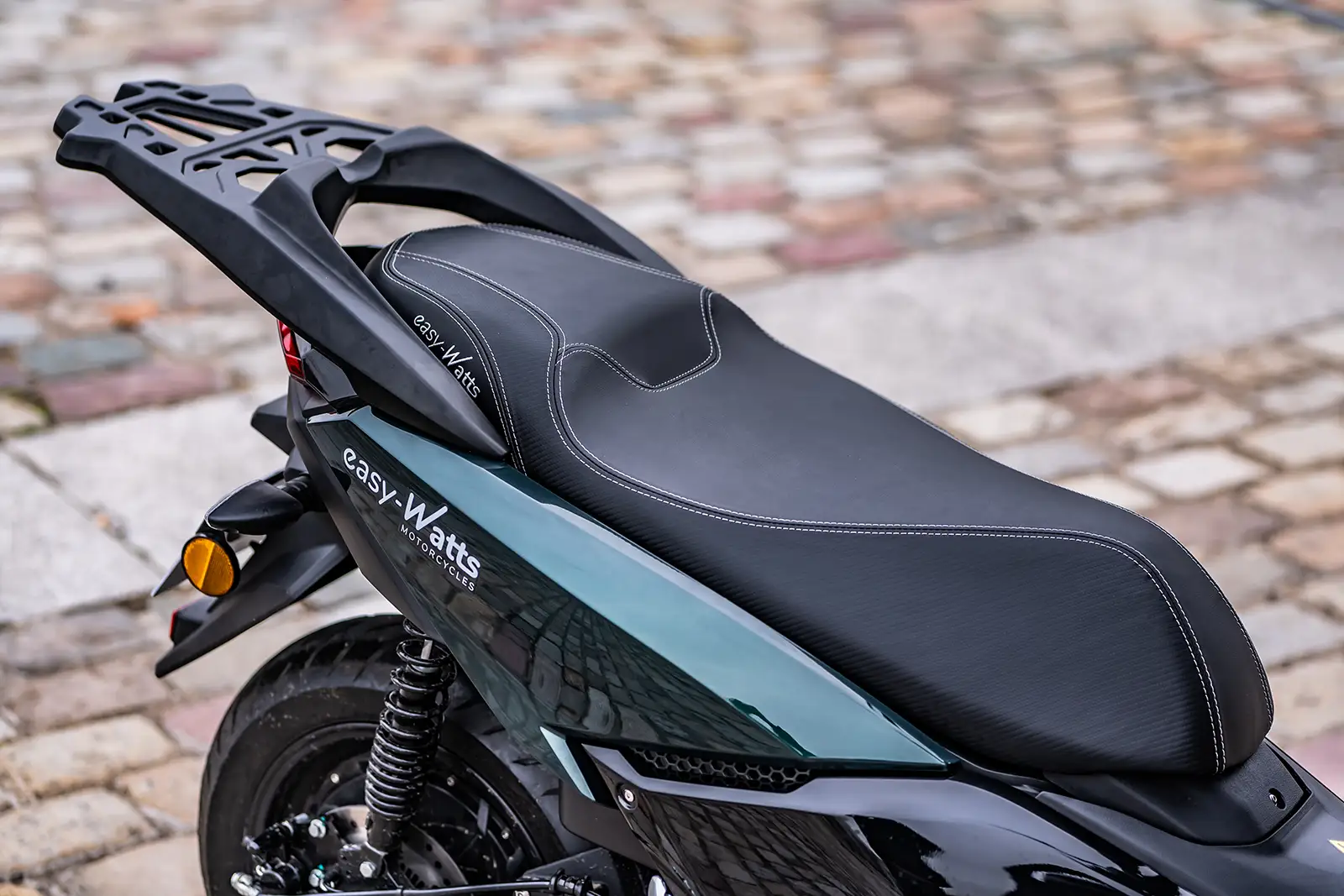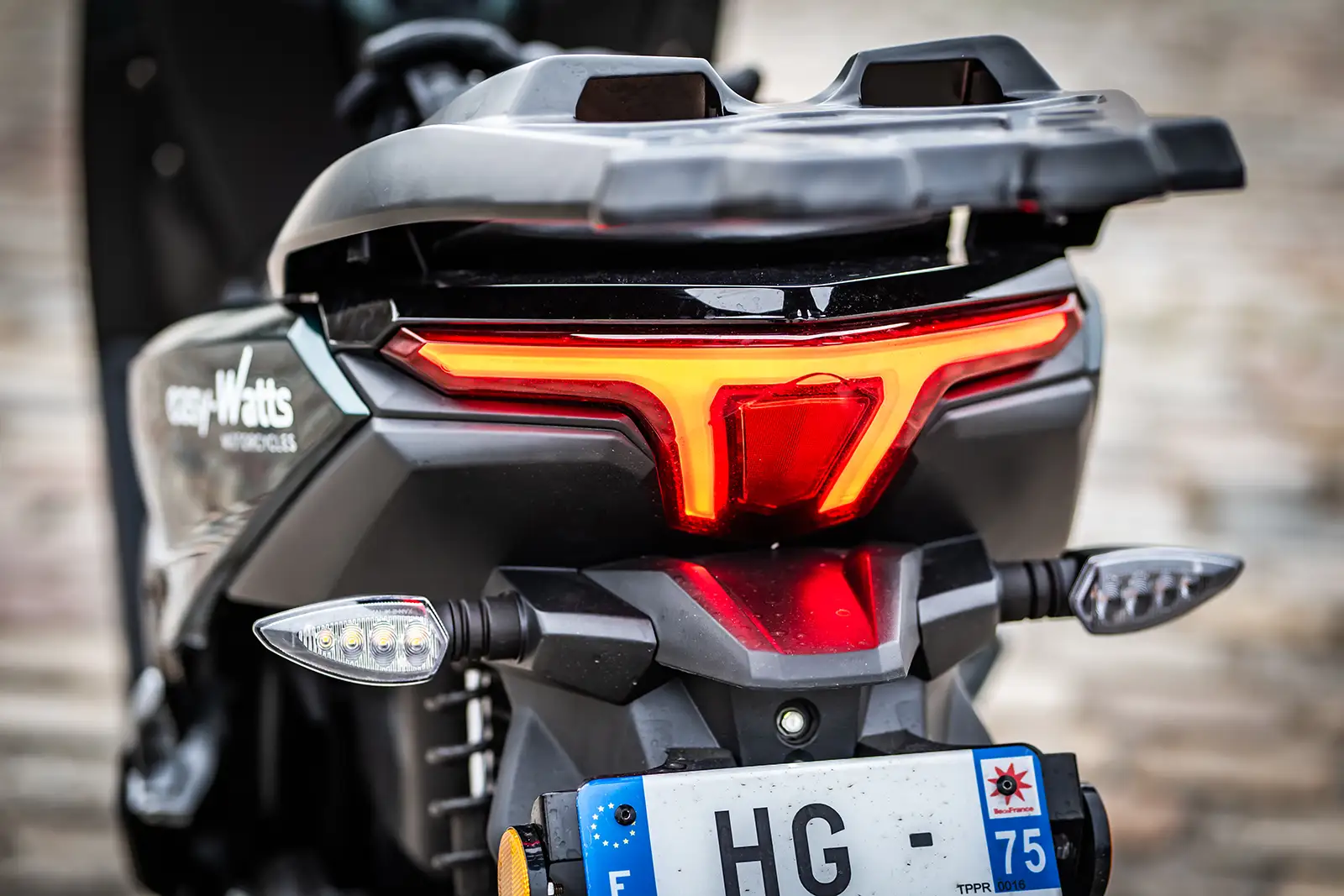 Généreux et original dans sa dotation, le easy-Watts e-Spark bénéficie notamment d’un système de démarrage sans clé, d’une télécommande pour mettre le scooter sous tension, ouvrir le coffre à distance et le faire clignoter pour faciliter son repérage de loin.