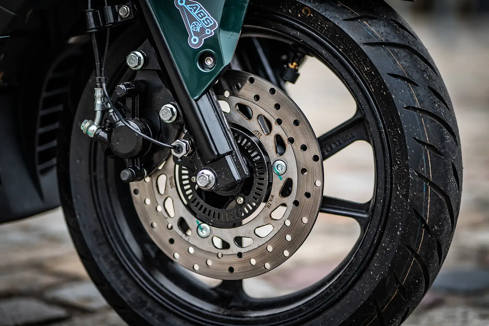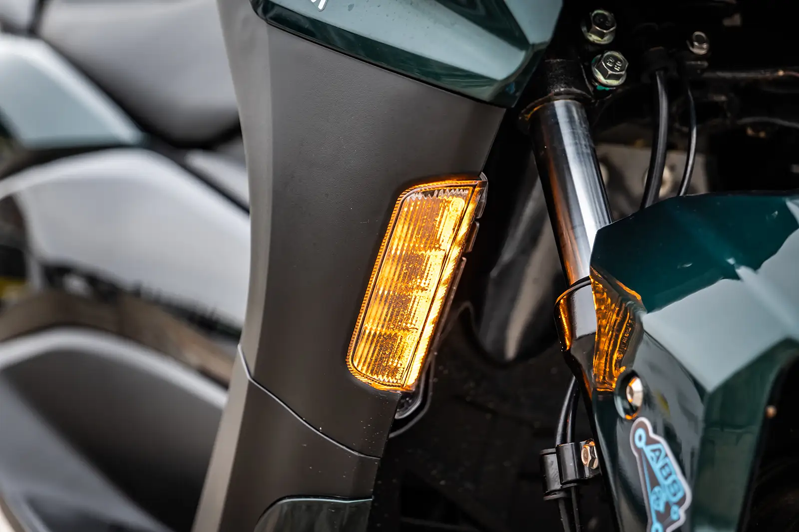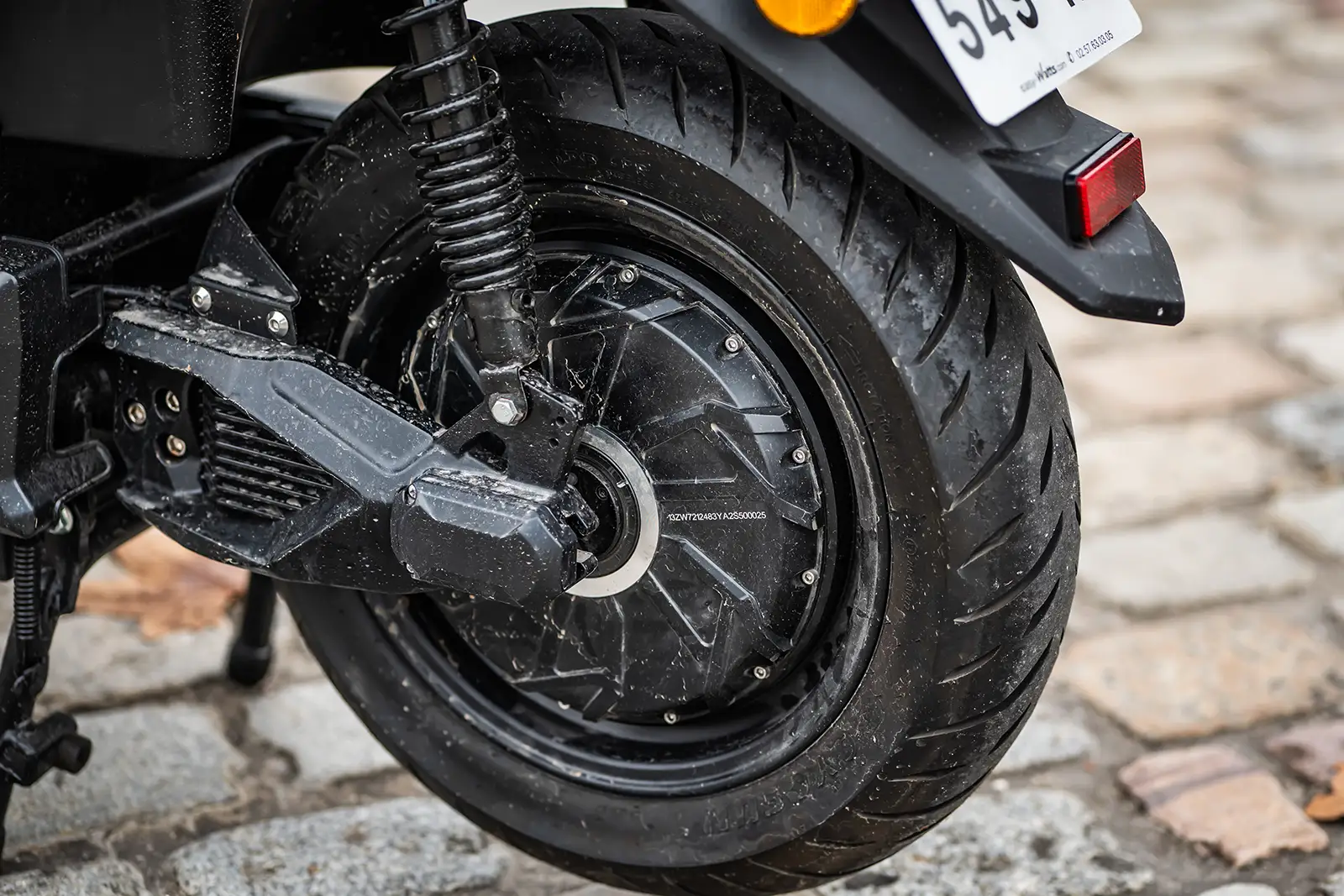 Le freinage ABS est efficace mais manque légèrement de mordant sur des arrêts plus soutenus. Les suspensions offrent un confort correct sur des routes dégradées, avec des rebonds légers mais maîtrisés et la fourche avant fait bien son job. Elle s’écrase peu sur les freinages et encaisse bien les déformations de la route. Enfin, les pneumatiques Yosun renvoient de bonnes informations pour éviter de se faire surprendre.
