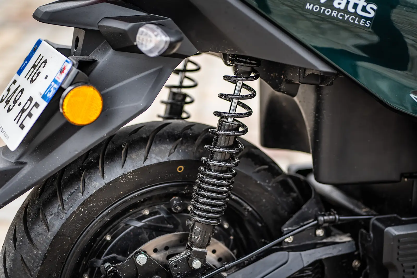 Le mode 1 (180 km d’autonomie) avec ses démarrages souples et bridé à 45 km/h est idéal pour évoluer en zone dense. Le mode 2 (140 km d’autonomie) monte à 85 km/h, mais les démarrages très énergiques sont difficiles à doser. Un constat que nous retrouvons avec le mode 3 (90 km d’autonomie) capable d’atteindre les 120 km/h en pointe. Notez que le easy-Watts e-Spark ne propose pas de récupération d’énergie au freinage, mais il dispose cependant d’une marche arrière bien pratique pour déplacer ses 151 kg.