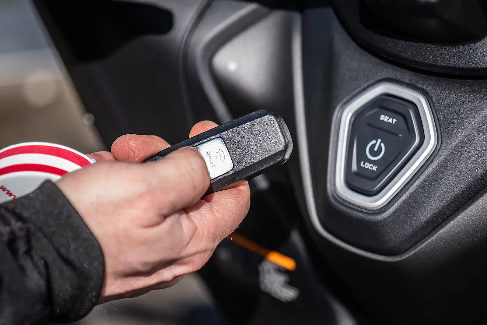 Malgré ses 221 kilos, l’équilibre du TMAX est toujours aussi bluffant. À l’aise dans la circulation dense et pour faire demi-tour, il profite de deux modes de conduite : Touring et Sport. Le premier, adapté à la ville, délivre des accélérations douces et progressives. Le deuxième, à peine plus brutal, se montre plus réactif. Le moteur 562 cc de 47,6 cv offre de belles performances tout en souplesse. Il est nativement accessible au permis A2 sans aucun bridage.