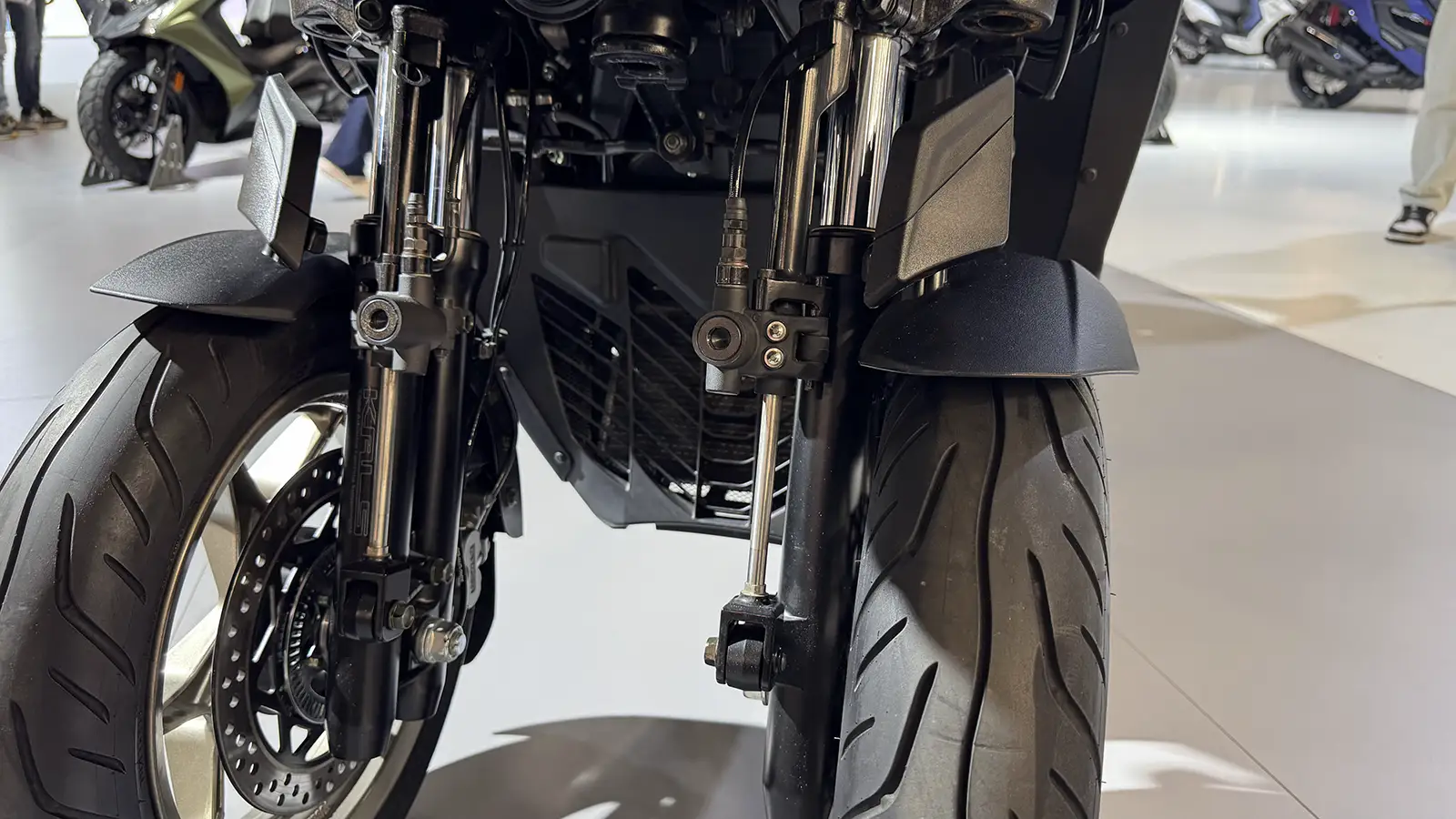Le freinage est assuré par des disques de 250 mm à l’avant et 260 mm à l’arrière, avec ABS et contrôle de traction déconnectable.