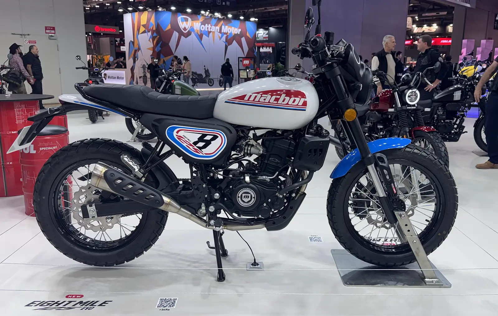 La Eight Mile 300 Concept annonce la future génération de scramblers de moyenne cylindrée de Macbor. Elle embarque un moteur monocylindre de 249,2 cm³, refroidi par eau, délivrant 26 ch à 9 000 tr/min et 21 Nm à 7 000 tr/min.