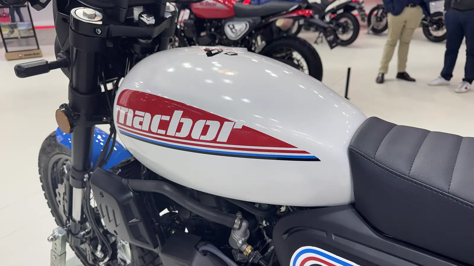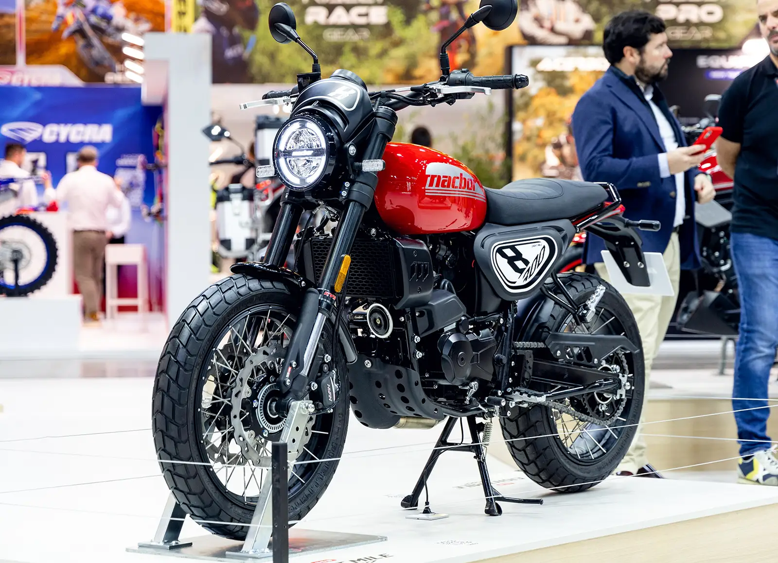 Le prototype Eight Mile 125 EVO symbolise la troisième génération du modèle phare de Macbor. Cette 125 cm³ adopte un style plus raffiné tout en conservant l’ADN scrambler de la marque. Son moteur monocylindre de 124,2 cm³, à refroidissement liquide et injection électronique EFI Delphi, développe 12,6 ch à 9 500 tr/min pour un couple de 9,6 Nm à 7 500 tr/min.