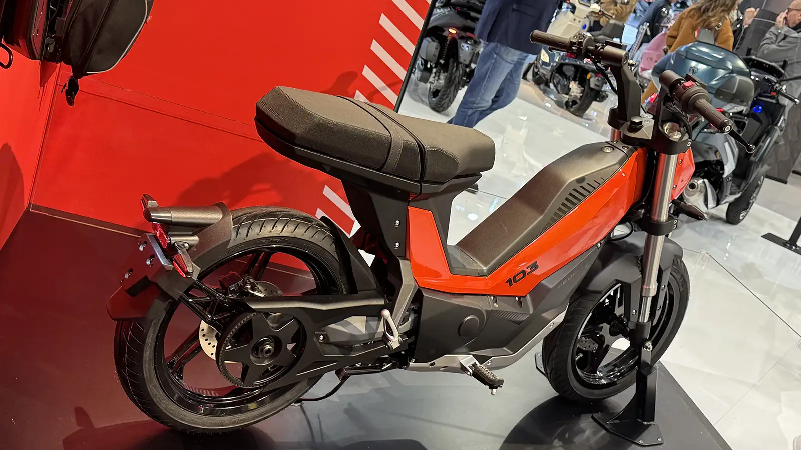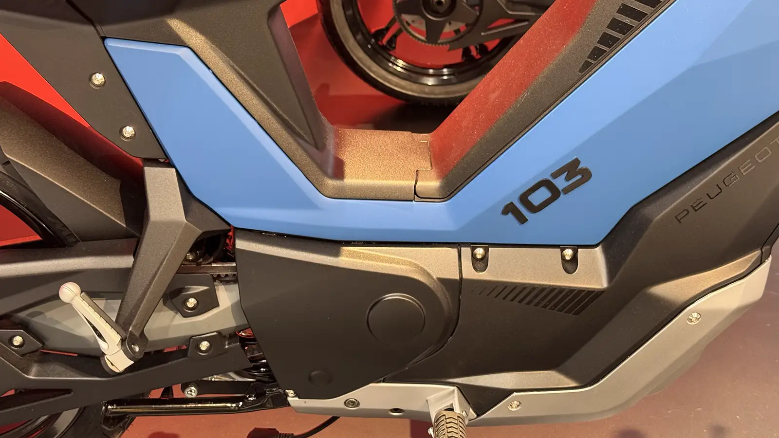 Construit autour d’un châssis monocoque en aluminium, le 103 affiche un poids contenu de 103 kg dans sa version 125 cc. Cette architecture rigide et légère améliore la stabilité et réduit les vibrations, tout en simplifiant la maintenance grâce à un nombre restreint de pièces.