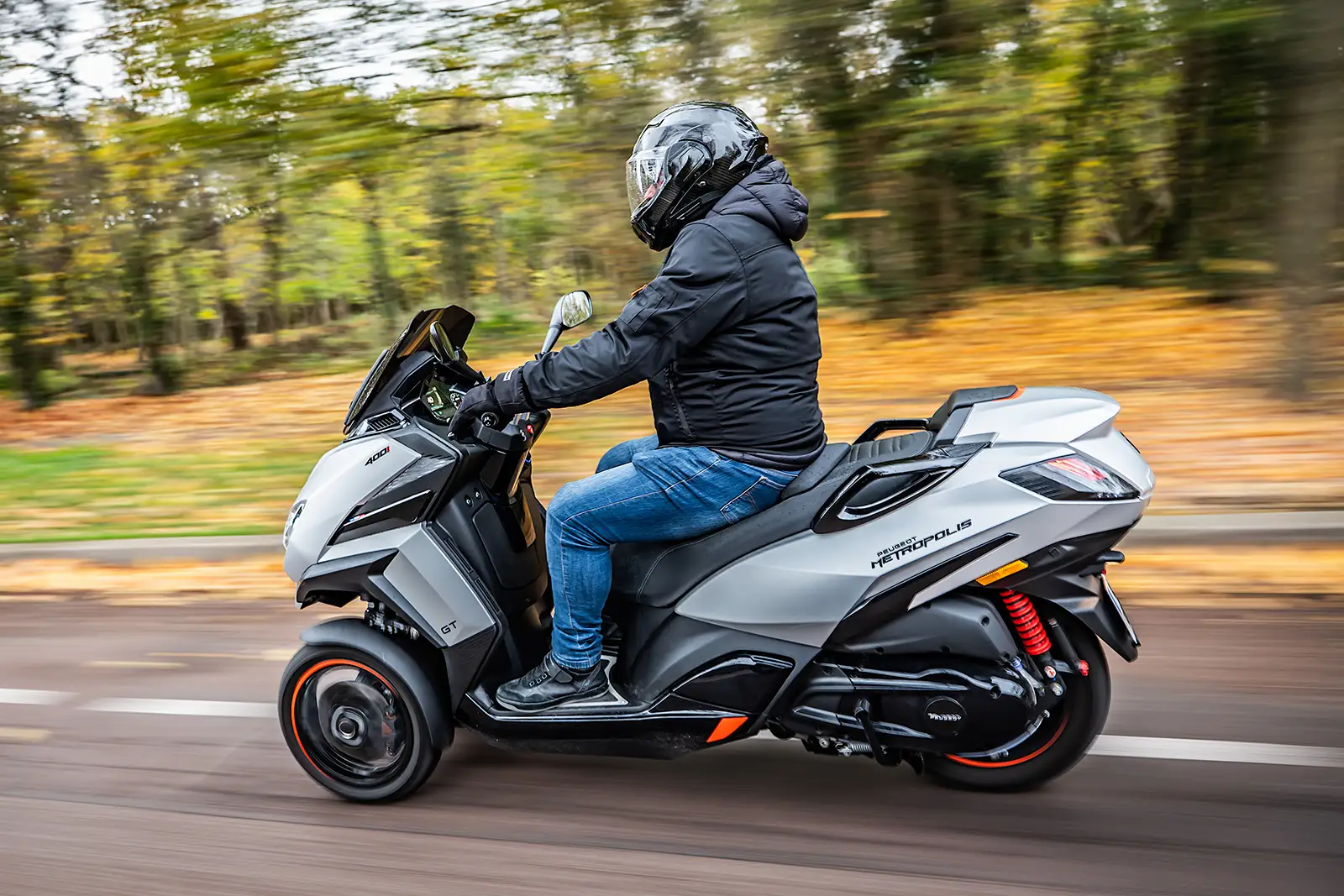 Pour mouvoir ses 280 kilos, le Peugeot Metropolis peut compter sur un monocylindre 4 temps 400 cc de 36 chevaux et 38,1 Nm de couple. Assez bruyant, ce bloc délivre de bons démarrages et des reprises correctes. Grâce à son réservoir de 13 litres et sa consommation mesurée de 4,3 litres au 100 km, il offre une autonomie de 300 km environ.