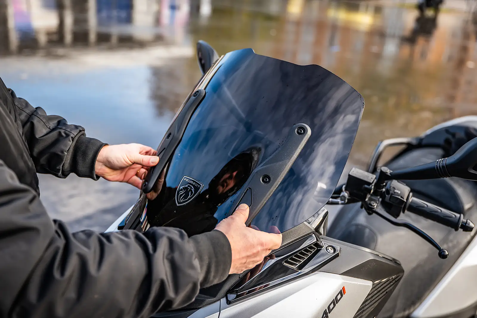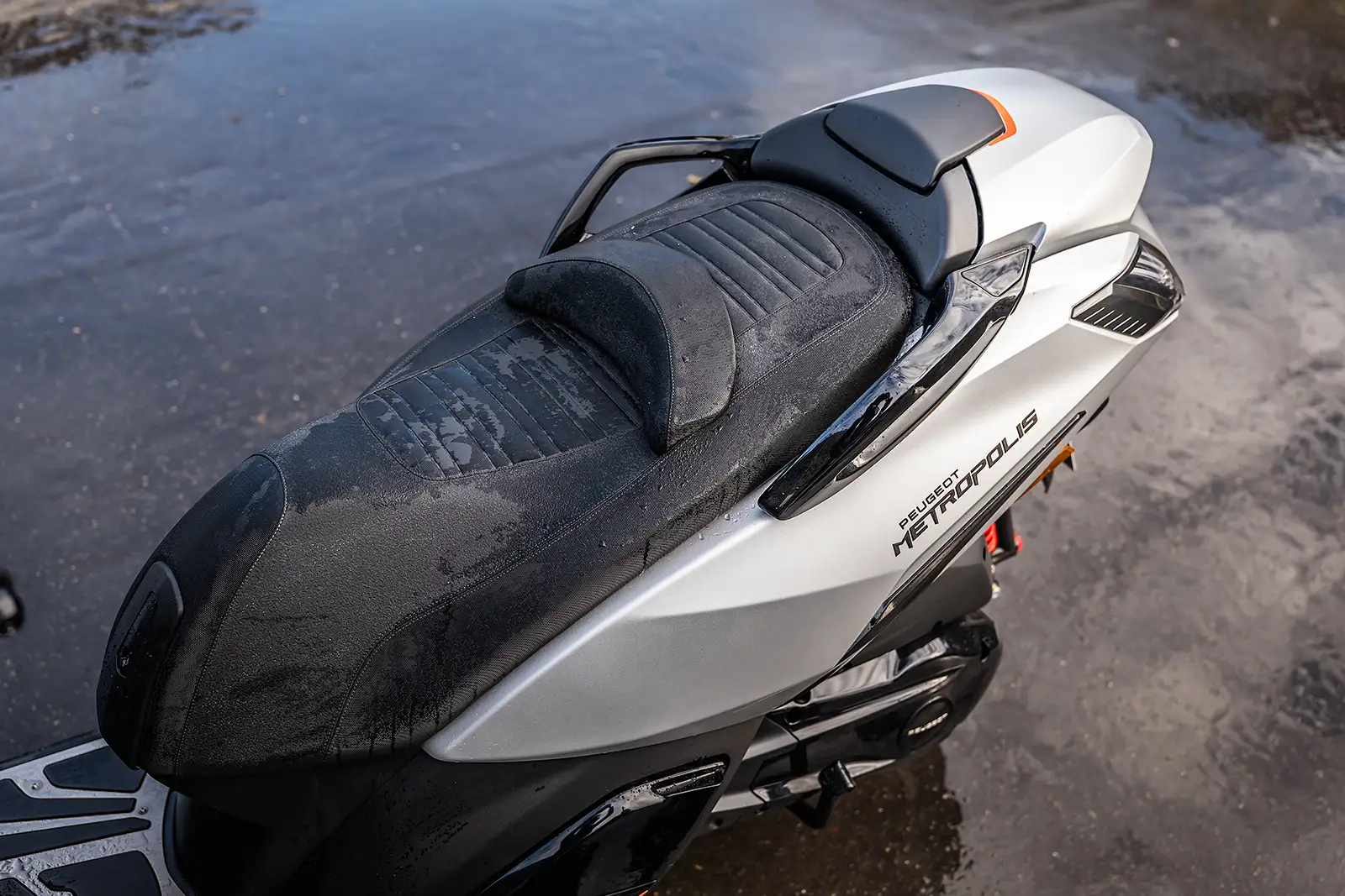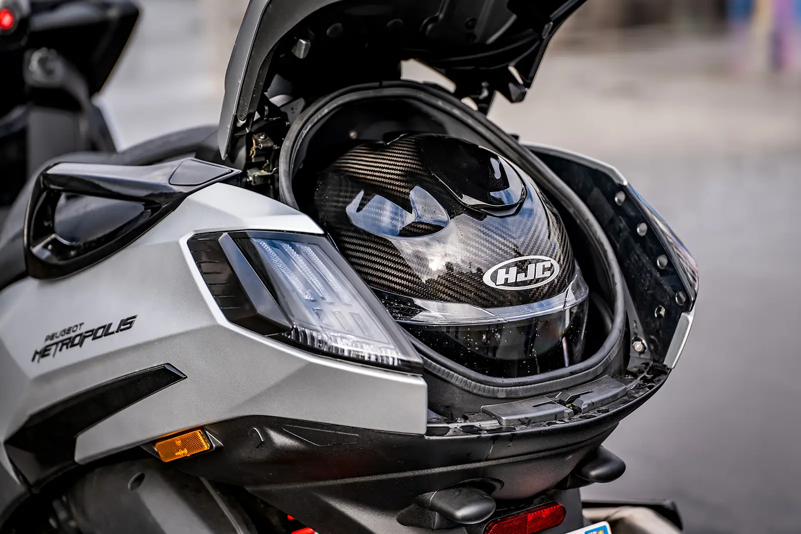 Le coffre accepte un petit casque, la bulle est réglable avec outils et le plancher plat est inexistant. En revanche, le dosseret réglable manuellement est très pratique et ergonomique. Enfin, grosse différence entre les deux modèles, avec un Metropolis disposant d’un roll-lock qui fige littéralement le train avant quand le CV3 nécessite de poser le pied au sol si vous dépassez le point d’équilibre.