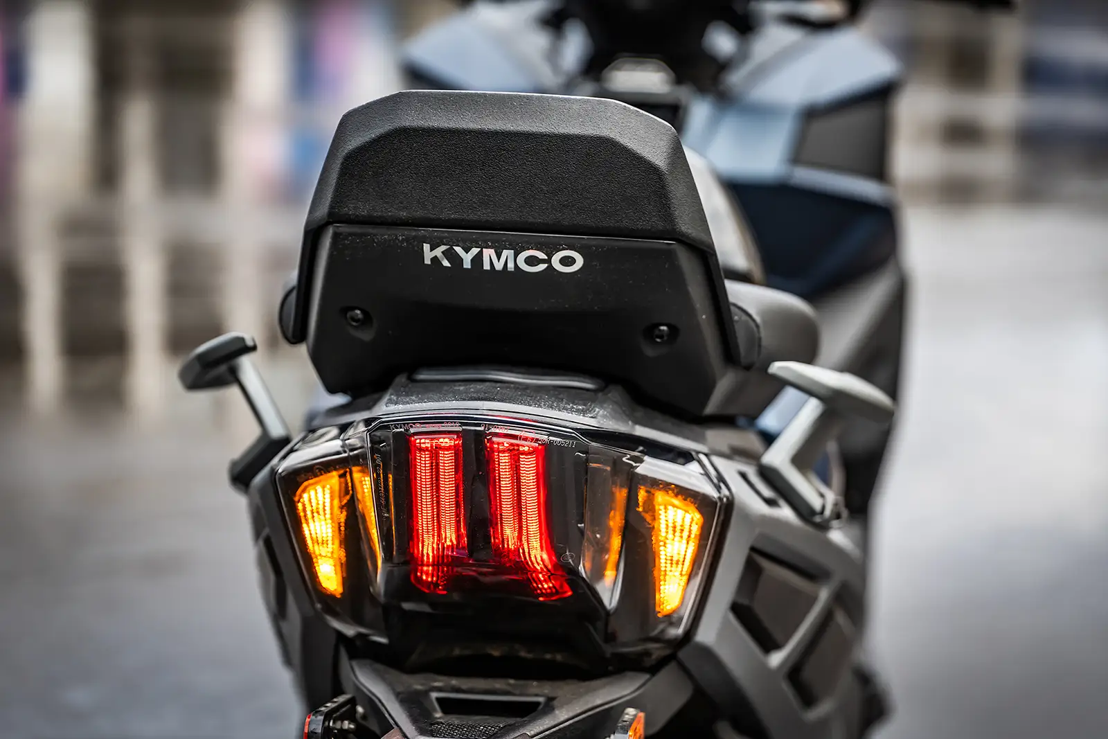 En face, le Kymco CV3 assume un look plus sportif et agressif largement inspiré du maxi-scooter AK 550 de la marque. Le design est aérien, racé et se veut plus proche d’une moto. La finition est de qualité avec une boucle arrière en aluminium visible, une sellerie soignée et des feux full leds.