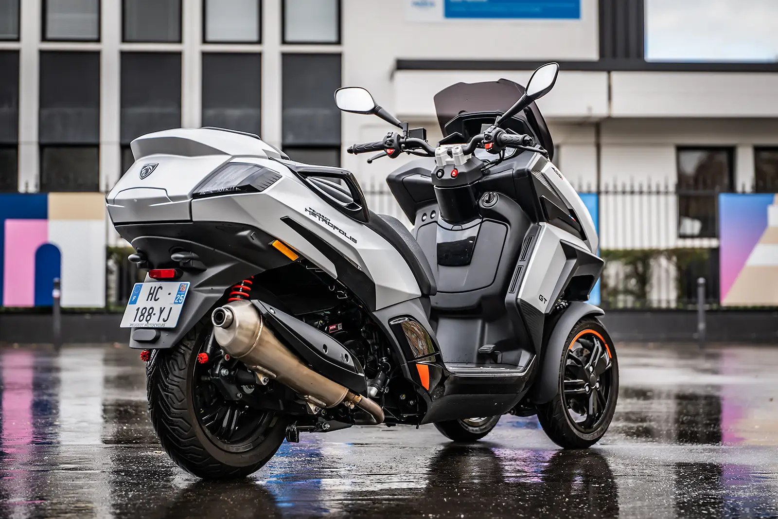 Visuellement, les deux scooters ne jouent pas la même partition. Le Metropolis en impose avec son style automobile très élégant et statutaire. Le design premium, les lignes acérées, la peinture valorisante, les feux leds 3 griffes et les badges redessinés sont très identitaires de la marque au lion. La finition et les assemblages sont très corrects malgré des jantes et une peinture un peu fragiles. Notez que le modèle testé ici est la version GT qui arbore un look plus dynamique avec des amortisseurs réglables, un plancher aluminium, un guidon naked et des liserés orange sur les jantes.