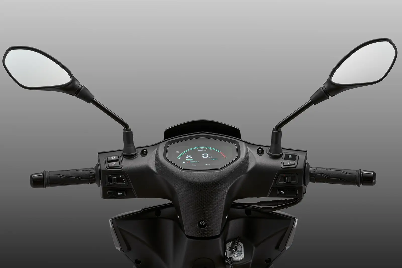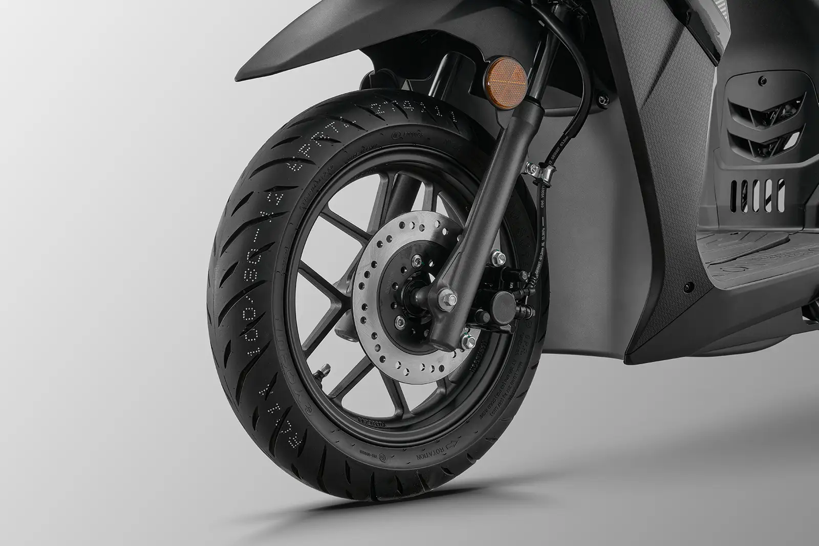 La sécurité est assurée par un système de freinage combiné CBS, couplant un disque avant de 190 mm à un tambour arrière de 110 mm. La selle basse de 760 mm et le plancher plat rendent ce scooter accessible à tous les gabarits, tout en facilitant l’accès à bord.