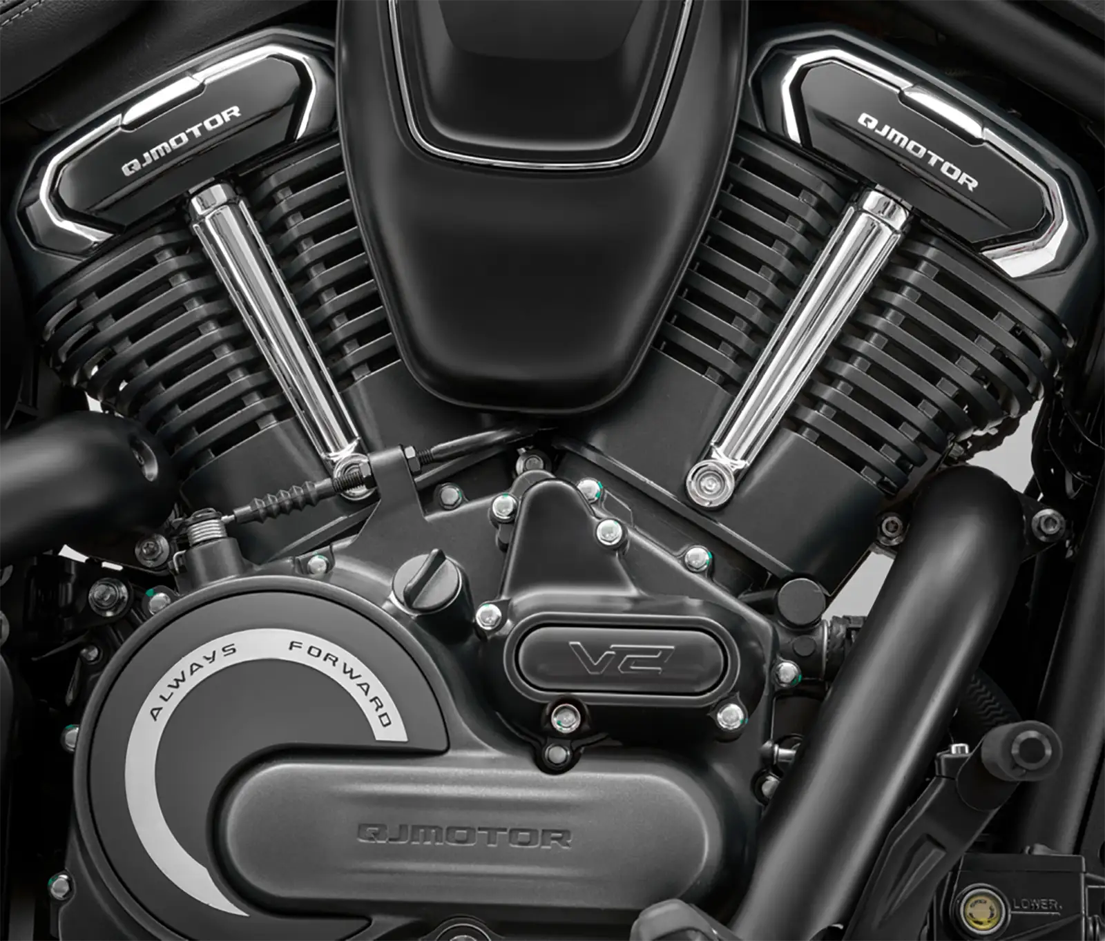 La QJMotor SRV 600 V2 2026 adopte un moteur fidèle aux codes du cruiser : un bicylindre en V de 550,4 cm³, doté d’un alésage x course carré de 70,5 x 70,5 mm.