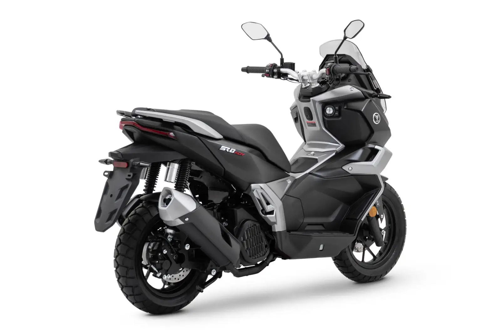 La selle ergonomique, placée à 810 mm, vise un large public. La suspension arrière à bonbonnes séparées et réglable en précharge promet davantage de confort sur routes cabossées. Les roues de 14 pouces à l’avant et 13 pouces à l’arrière, équipées de pneus mixtes, facilitent le passage du bitume aux chemins plus accidentés.