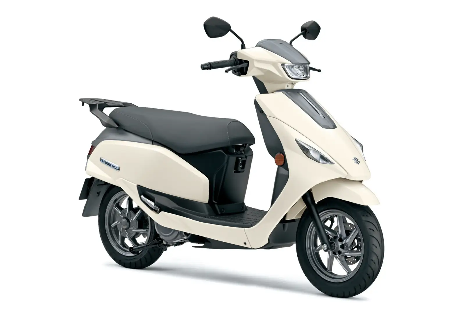 Déjà lancé en Inde, l’e-Address fera sa première apparition au Japon. Équivalent 125 cm³, ce scooter compact se distingue par sa simplicité, son autonomie de 80 km (norme WMTC) et son design sobre, taillé pour les déplacements quotidiens.