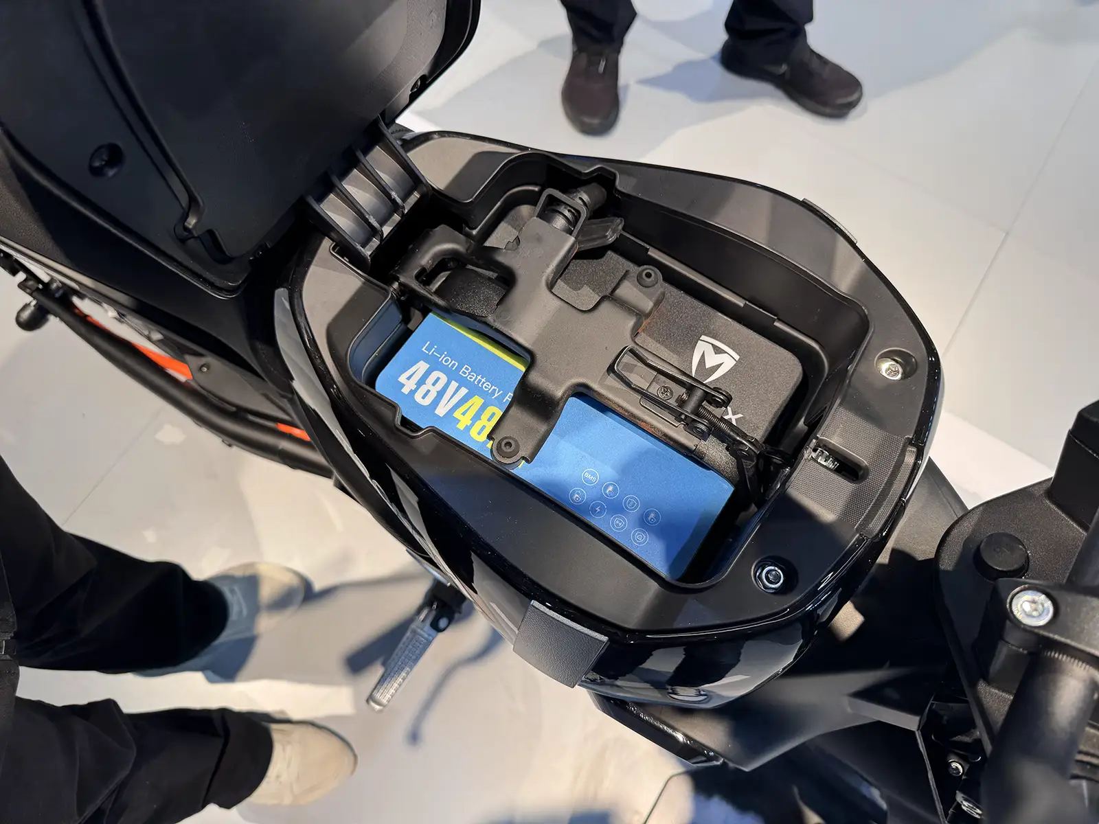 Sous la selle, la M05 embarque une batterie 48V48Ah 10A, équipée du système Cube 2.0 Smart BMS et de cellules LMFP. Ce dispositif offre 25 niveaux de protection et une autonomie d’environ 80 km, suffisant pour les déplacements quotidiens. La batterie est amovible et se recharge sur une prise domestique.